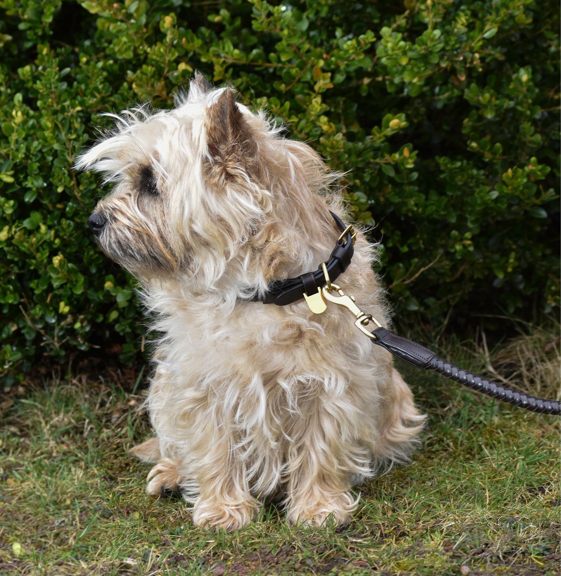 Premium dog collar in rounded natural tanned leather